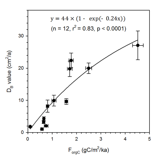 西北太平洋海山区沉积物生物扰动速率和有机质累积通量之间的关系