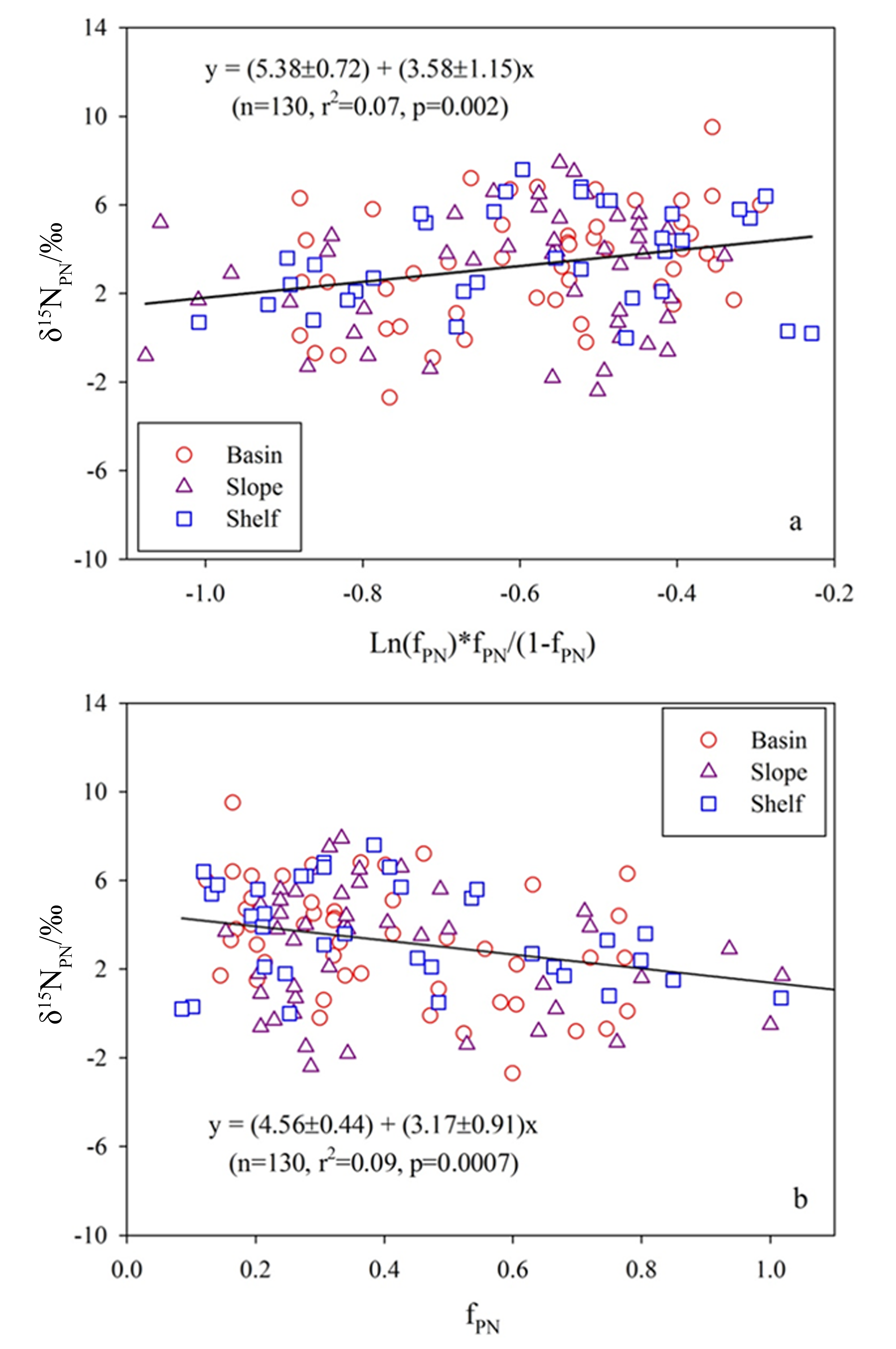 普里玆湾附近海域50 m以深PN再矿化的氮同位素分馏(a:瑞利模型;b:稳态模型)