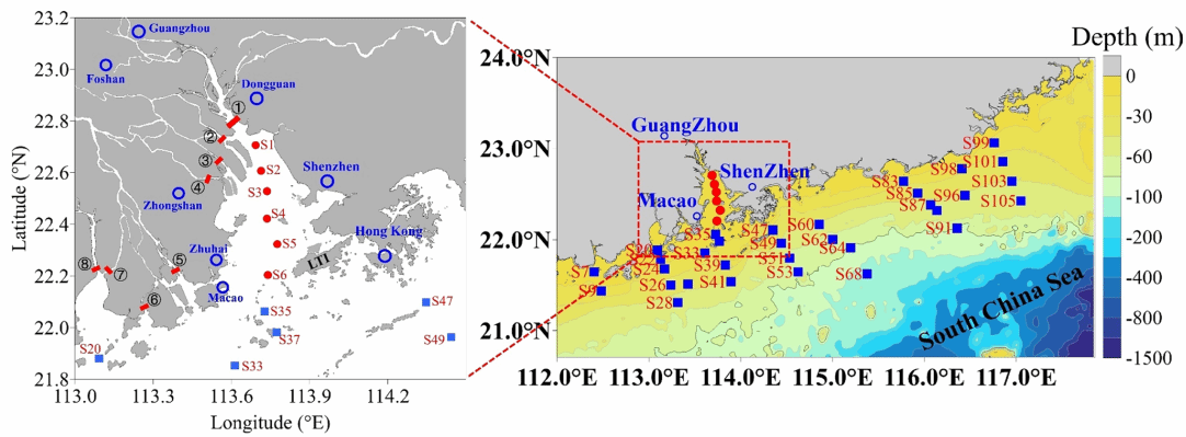 2018年珠江口及邻近陆架区黑碳采样站位图