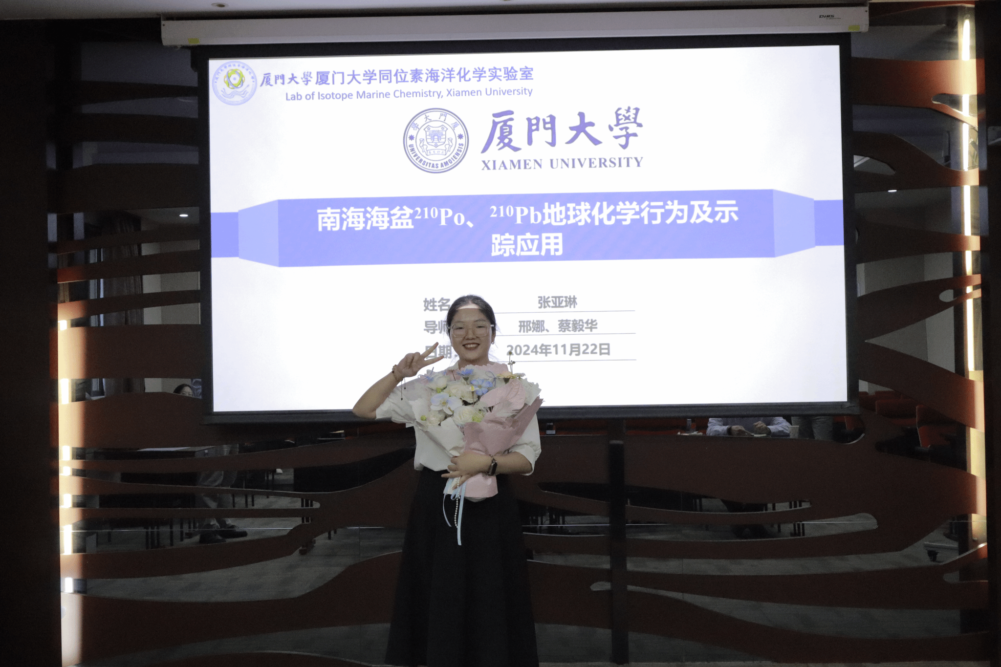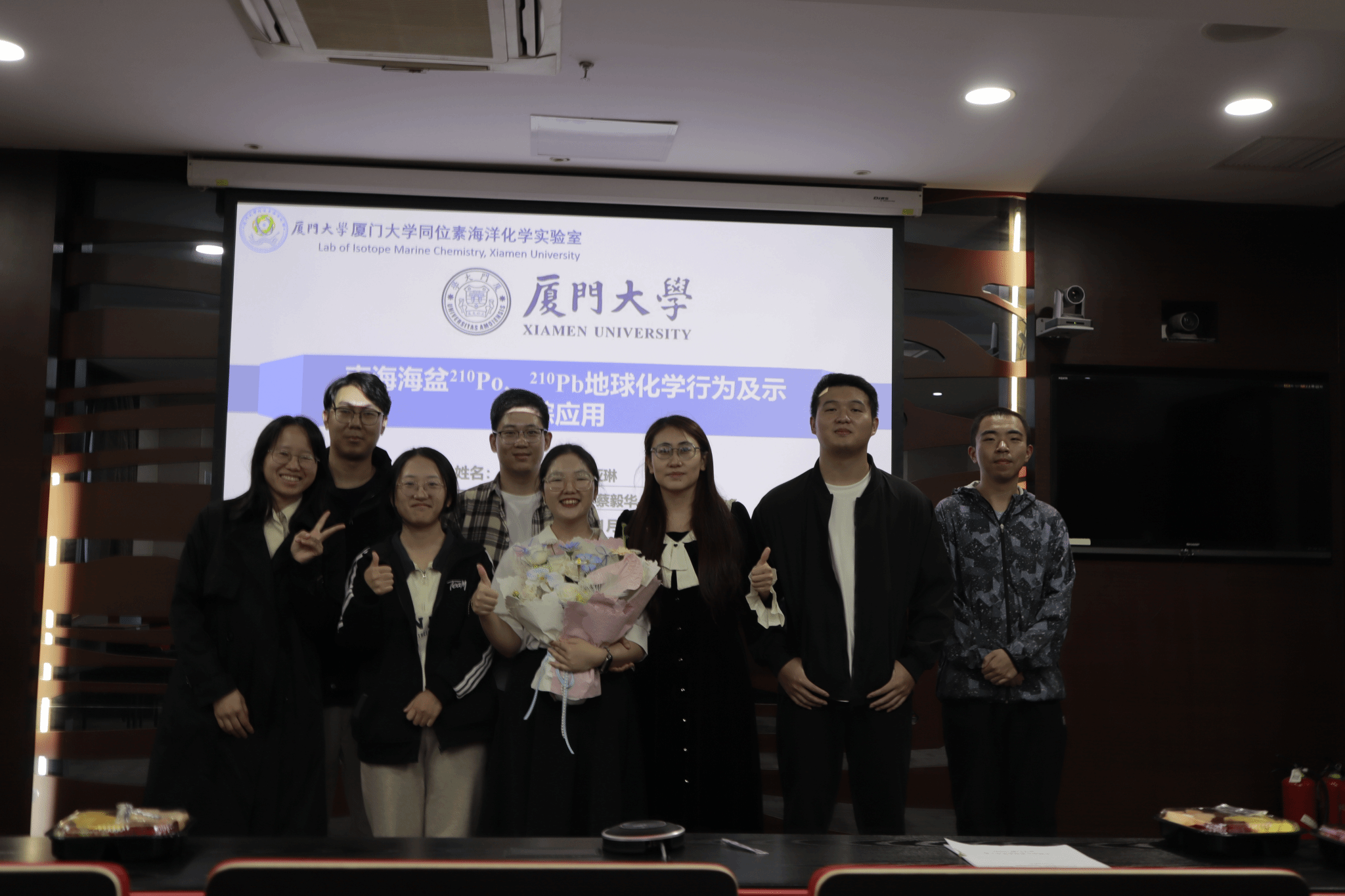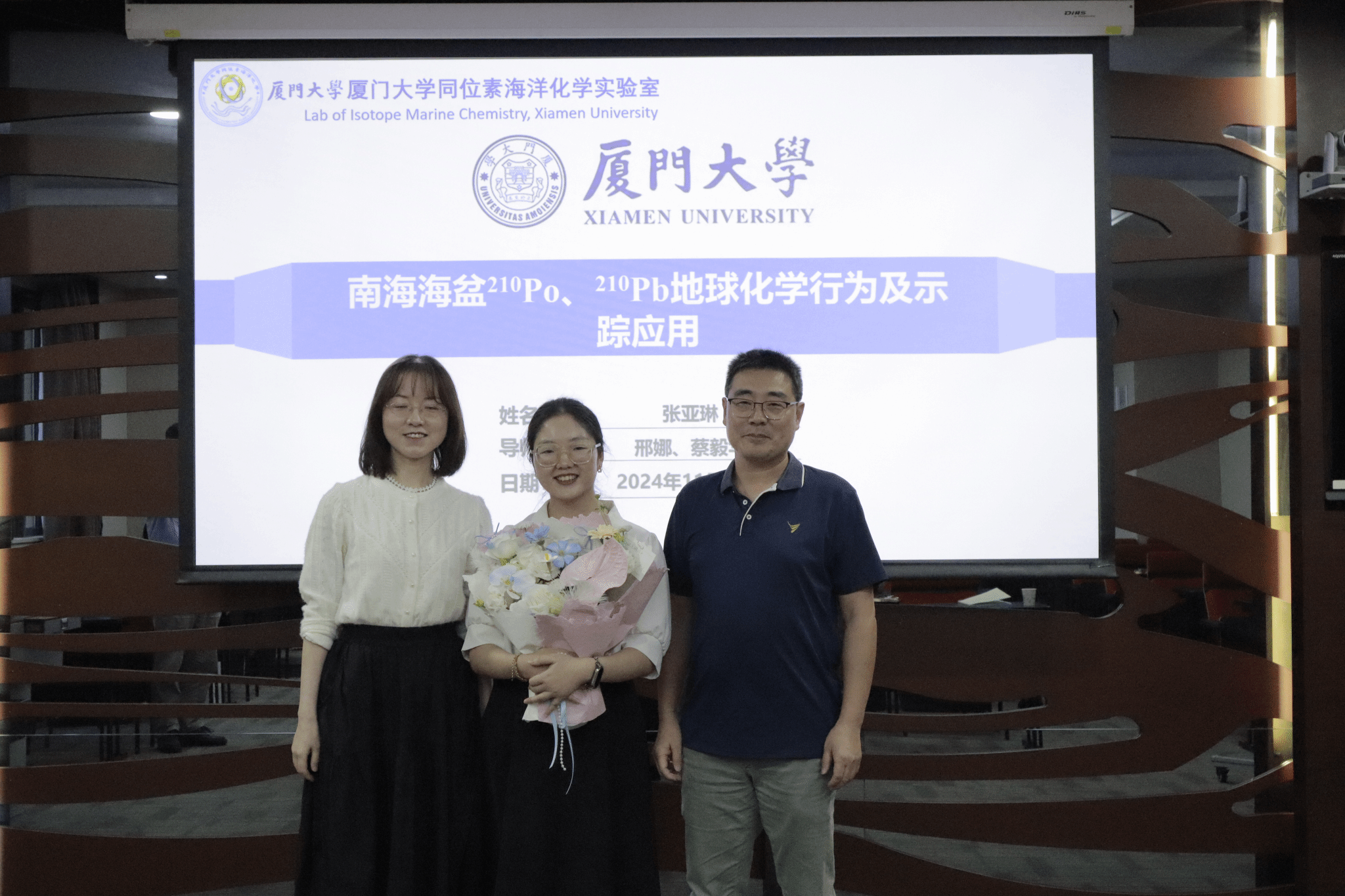 张亚琳和导师、答辩委员会 |  张亚琳和课题组同学 |