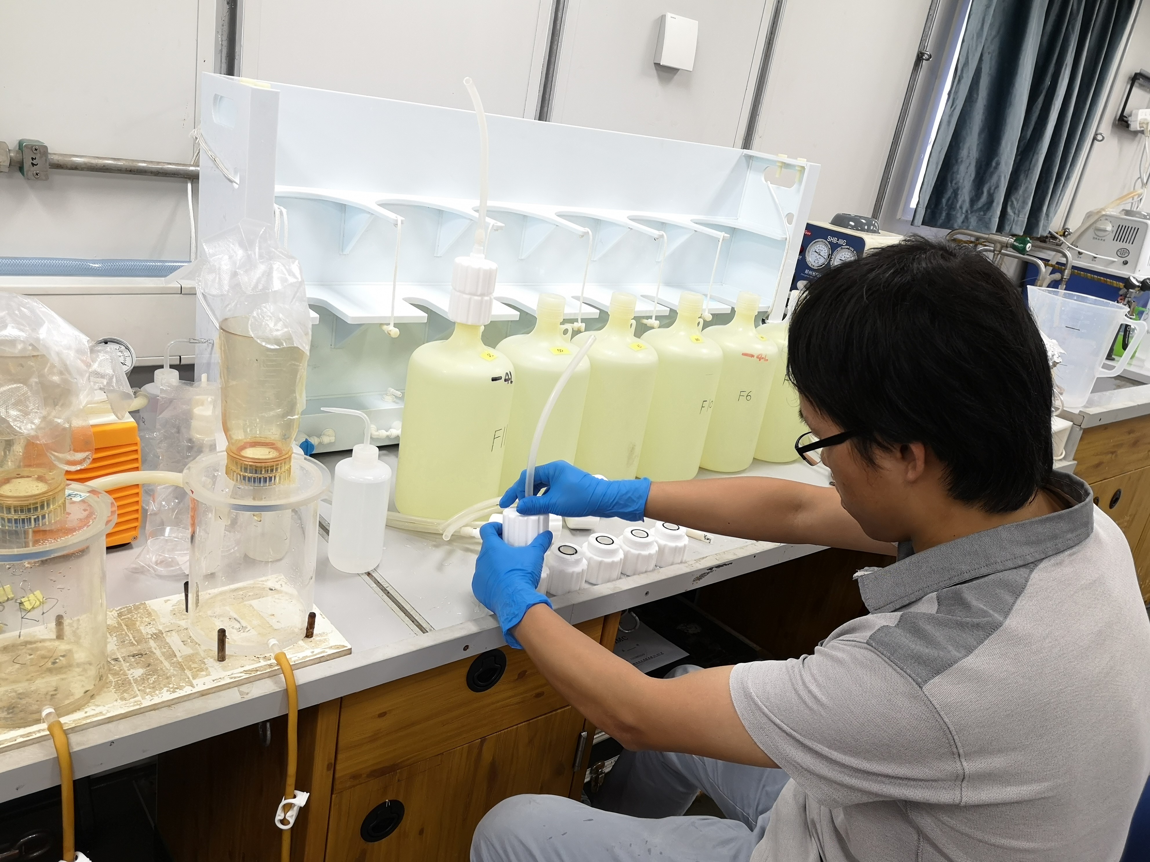 2019年6月17日,赵秀峰同学搭乘“嘉庚”号从厦门海沧远海通达码头出发,历时19天,完成了南海SEATS站和M断面210Po-210Pb、234Th、颗粒有机碳和生物硅的现场采样和预处理工作,7月5日顺利返航,圆满完成航次任务。