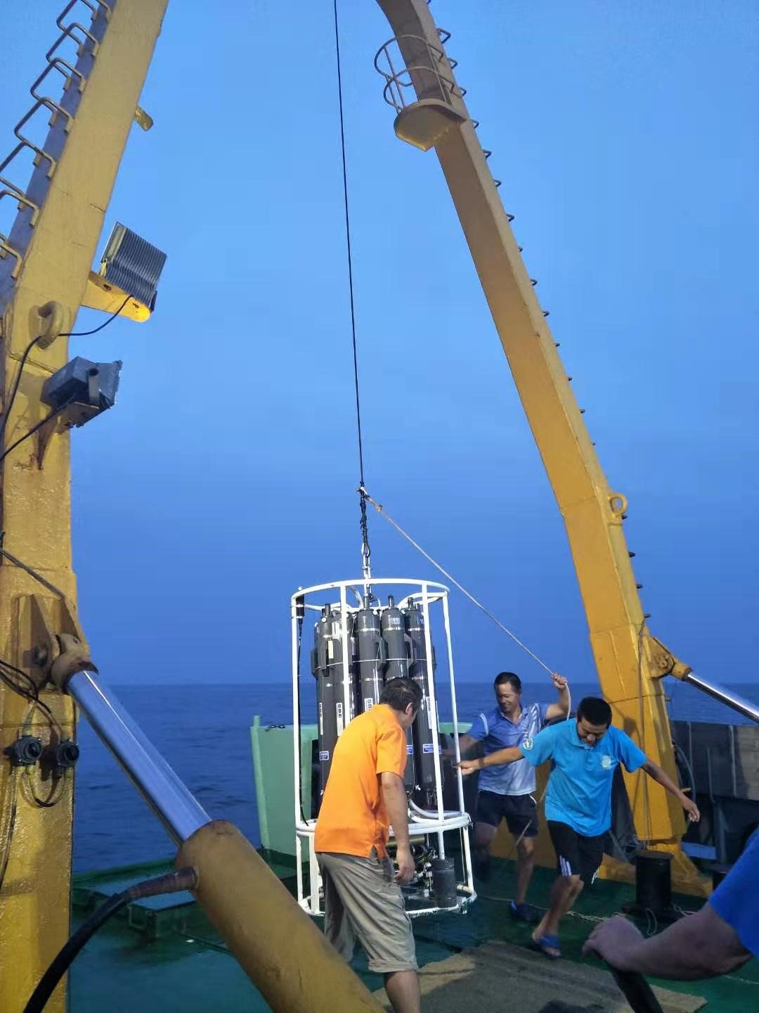 2019年夏季“台湾海峡科学考察研究”共享航次是国家自然科学基金委在台湾海峡组织的第十个科学考察研究航次,依托“延平2号”科考船实施。本航次的主要科学目标是针对2019年ENSO年强降雨的背景,聚焦河口羽流对该区域生态系统生物群落结构及营养盐、污染物的生物地球化学过程的影响。航次分为2个航段执行,分别为海峡南北海域的大面调查航段(7月21日-7月30日)和海峡南部海域的羽流-上升流耦合过程研究航段(8月17日-8月29日)。厦门大学同位素海洋化学研究组徐超、宁江豪分别参加了1、2航段的调查,共采集52个站位海水颗粒物13C和15N、硝酸盐15N和18O和生物固氮样品300多份。