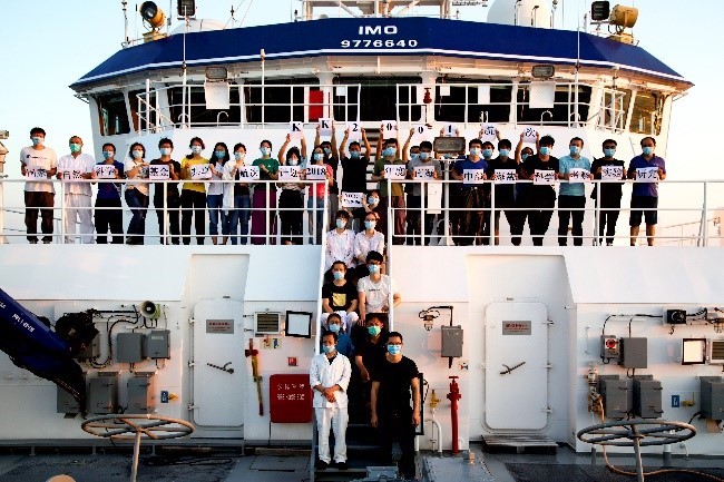 厦门大学同位素海洋化学研究组冯娜、田杰2人于2020年4月15日搭乘“嘉庚号”从厦门海沧远海通达码头出发,历时37天,于5月21日顺利返航。在陆坡和海盆区的13个站位共采集210Po和210Pb样品158份,颗粒态黑碳样品143份,颗粒有机碳样品158份,生物硅样品158份等。