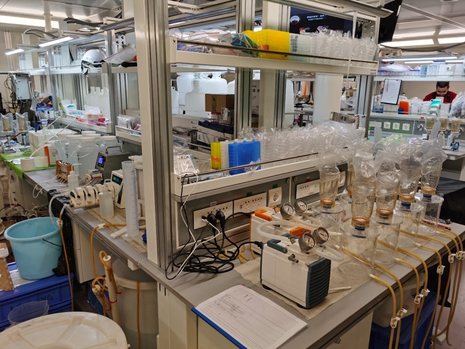 “雪龙2号”船上的同位素预处理实验台面 冰上的“雪龙2号”