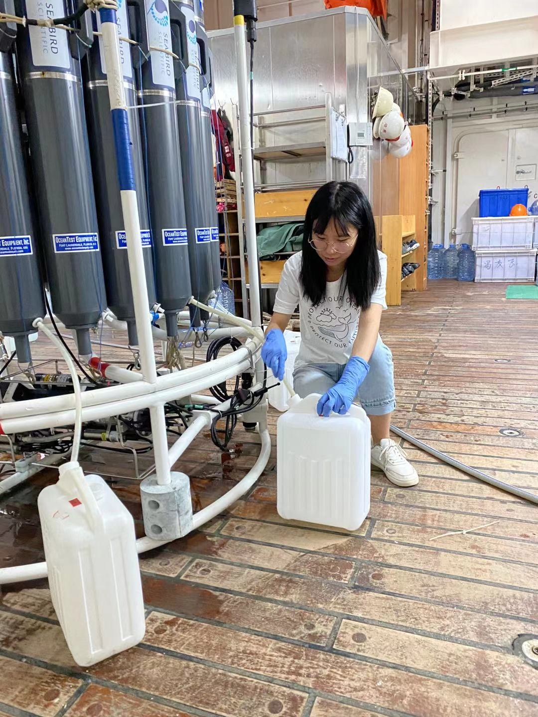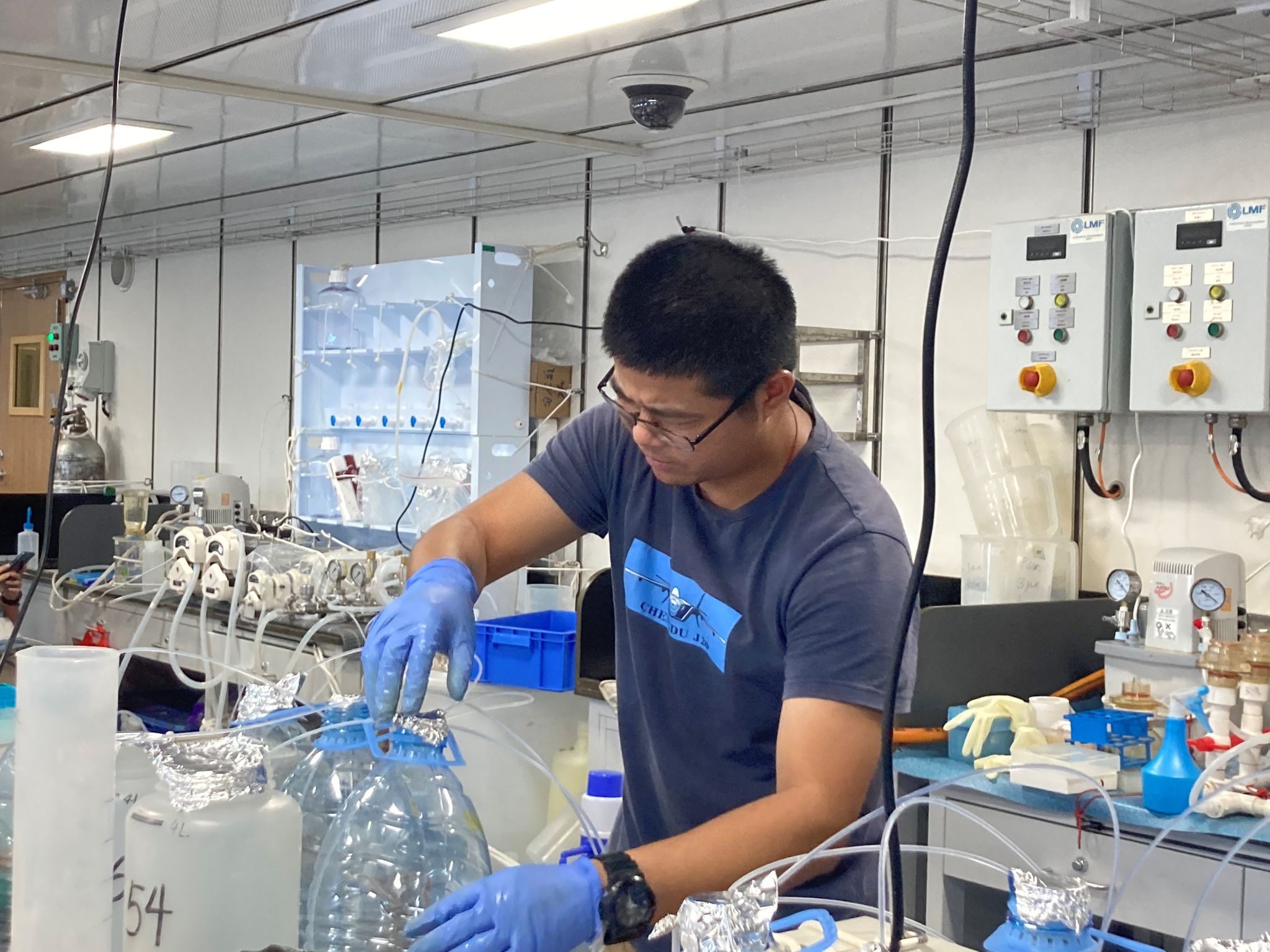 厦门大学同位素海洋化学研究组张清华、田杰2人于2021年8月18日搭乘“东方红3号”从三亚南山港码头出发,历时21天,于9月08日顺利返航。在陆坡和海盆区的11个站位共采集210Po和210Pb滤液样品136份,210Po和210Pb滤膜125份,生物硅膜120份,颗粒有机碳滤膜118份,在7个站位采集234Th滤膜50份,在22个站位采集18O样品304份,在22个站采集303份溶解态黑碳样品,303份溶解态有机碳样品,303份有色溶解态有机物样品。