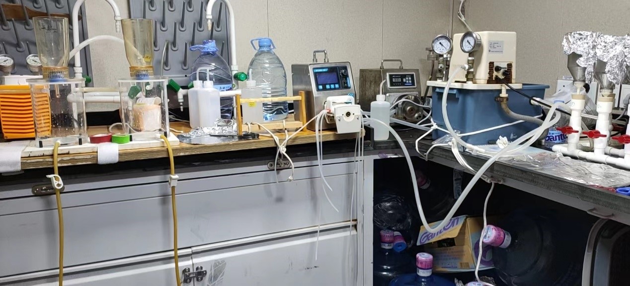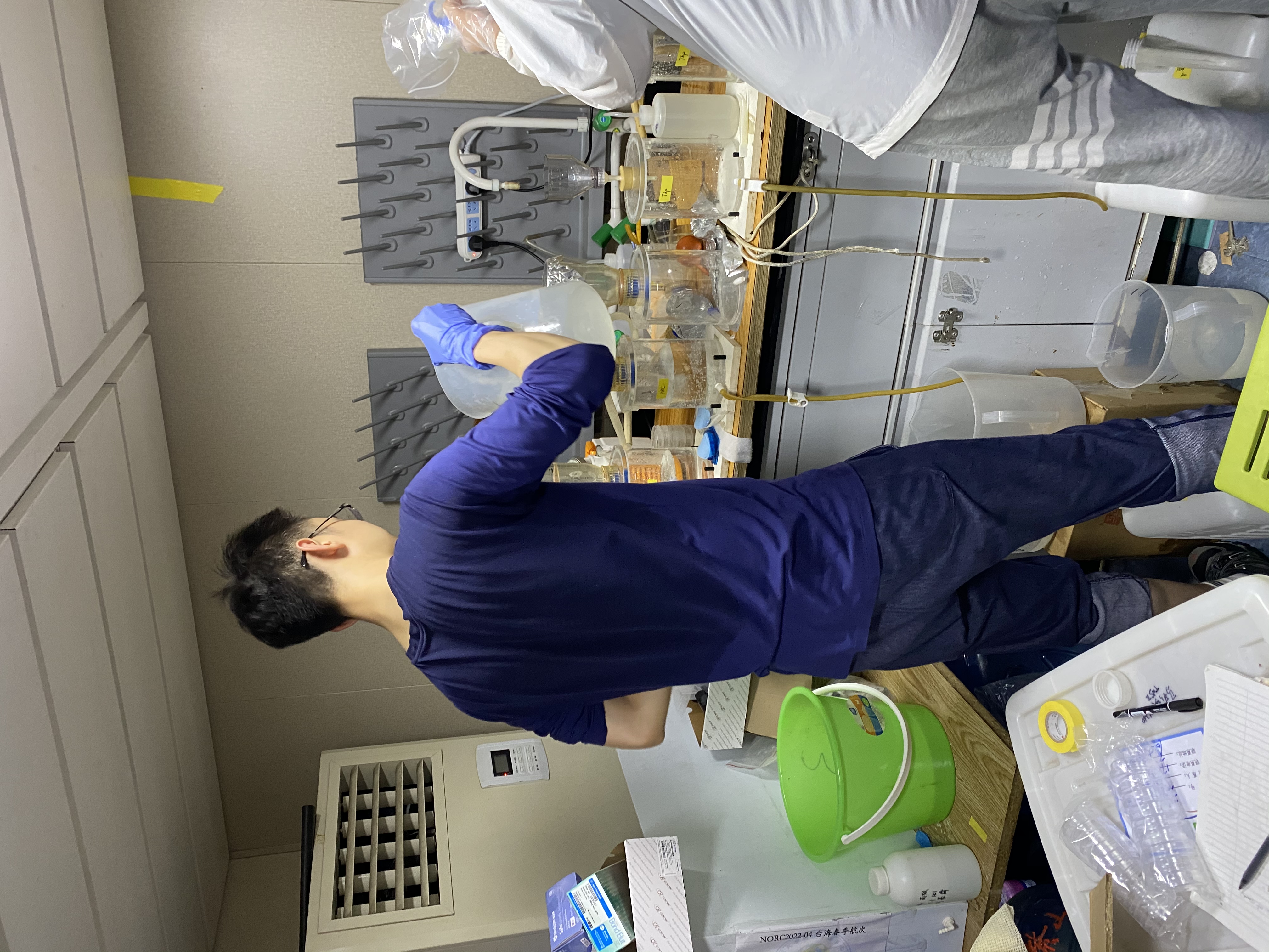 科考队员在下放CTD “中国海监203”船上的同位素预处理实验台