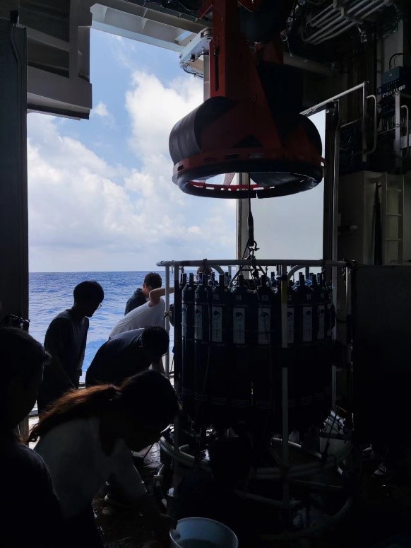 NORC2022-05航次采样站位图 “东方红3号”船上的CTD采水间
