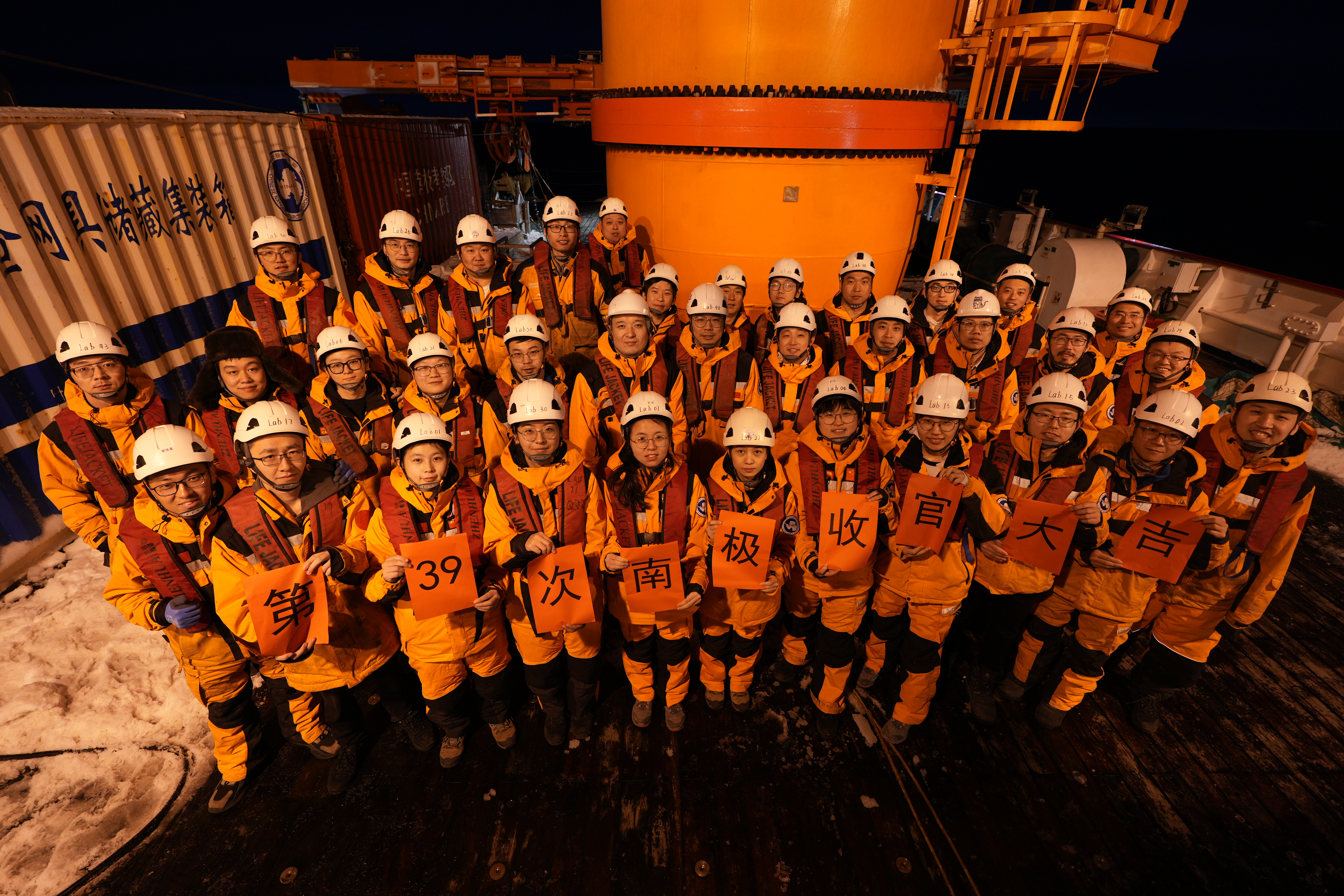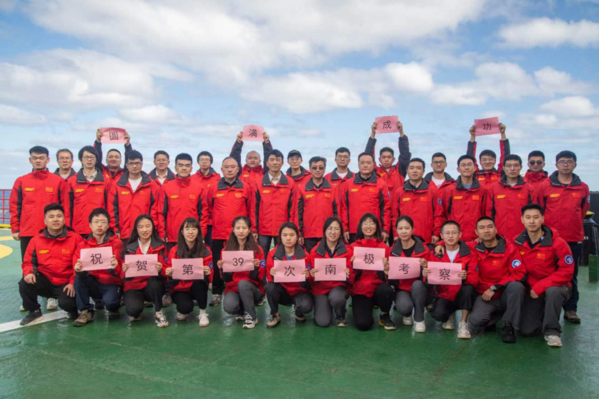 中国第39次南极科学考察队“雪龙2号”穿越赤道纪念合影 中国第39次南极科学考察队“雪龙2号”收官照