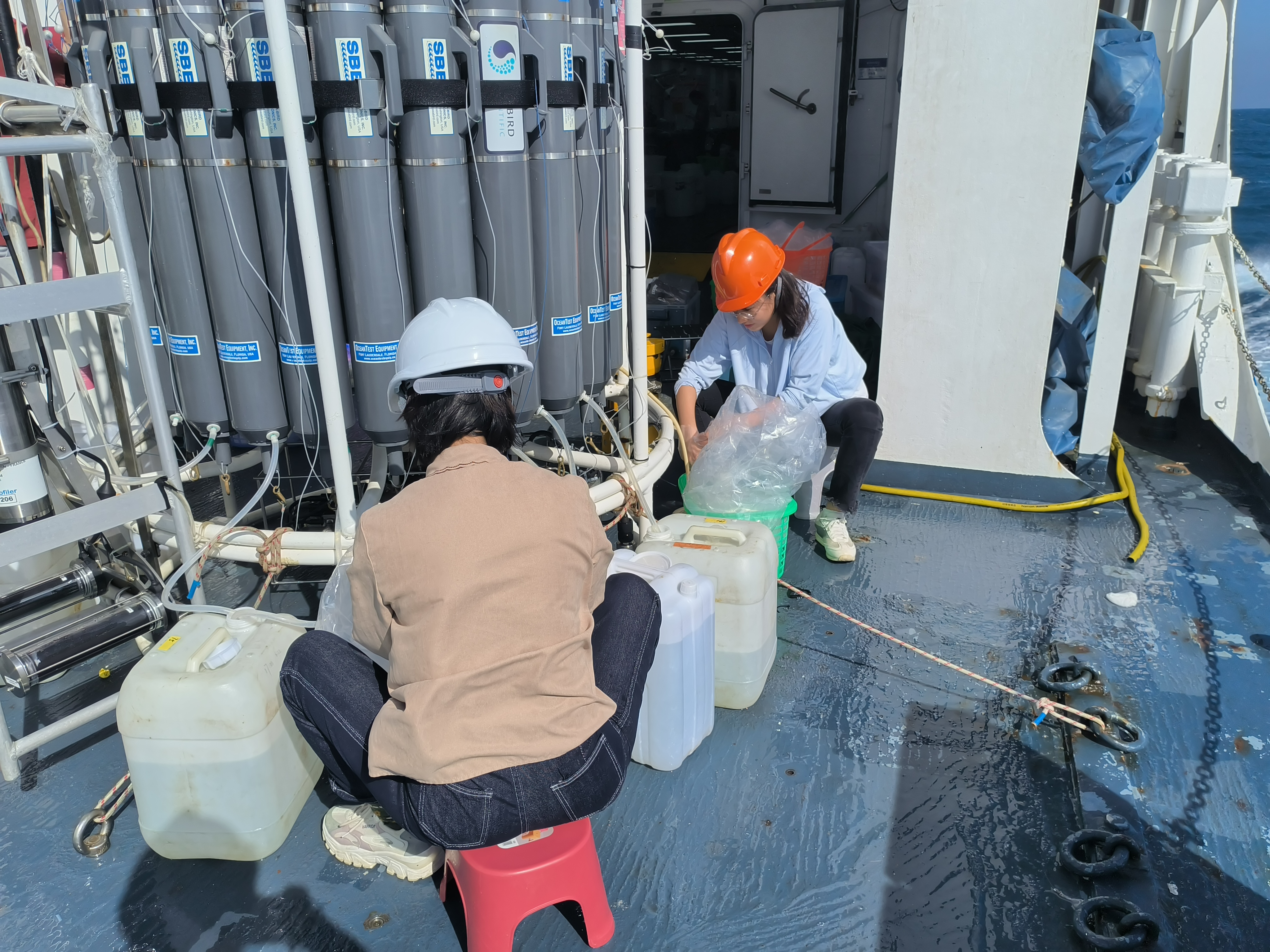NORC2022-06采样站位图 张亚琳和马莉在采集CTD水样