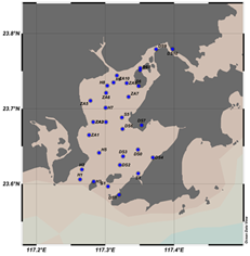 厦门大学同位素海洋化学研究组陈志刚老师带领其研究生分别于2023年3月27日、8月5日、12月24日,乘坐渔船从诏安湾码头出发前往诏安湾采集磷样品,每次采样为期3天。